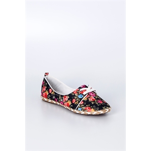 104 Çiçekli Bağcıklı Babet Siyah