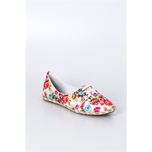 103 Çiçekli Bağcıklı Babet Beyaz